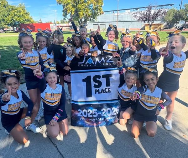 Our 2025 Jr. Pee Wee Cheerleaders brought home 1ST PLACE from the JAMZ Comp in Roseville!